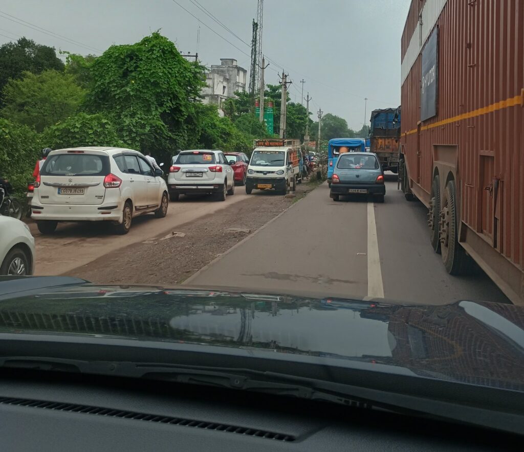 ശിവസാഗറിന് സമീപം നാഷണൽ ഹൈവേ അതോറിറ്റി ഓഫ് ഇന്ത്യ (എൻഎച്ച്എഐ) നടത്തുന്ന റോഡ് വീതി കൂട്ടൽ ജോലികളാണ് തടസ്സത്തിന് കാരണമായി പറയുന്നത്. മൂന്ന് ദിവസം മുമ്പ് മേഖലയിൽ പെയ്ത മഴ പ നിർമ്മാണ പ്രവർത്തനങ്ങൾ തടസ്സപ്പെടുത്തുകയും ചെയ്തതോടെ സ്ഥിതി വഷളായി. വേണ്ടത്ര സജ്ജീകരണങ്ങളില്ലാത്ത വീഥിയിൽ വാഹനങ്ങൾ വഴിതിരിഞ്ഞ് സഞ്ചരിക്കാൻ നിർബന്ധിതമായയോടെ ഗതാഗതം വീണ്ടും കുരുക്കിലേക്കാണ് ചെന്നെത്തിയത്.