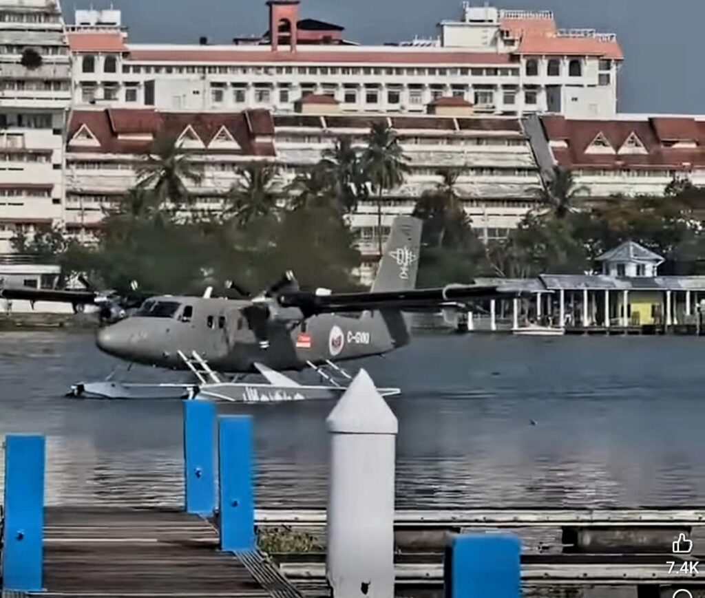 കൊച്ചി: സംസ്ഥാന ടൂറിസം വകുപ്പ് ആരംഭിക്കുന്ന സീപ്ലെയിൻ കൊച്ചി ബോൾഗാട്ടി പാലസ് വാട്ടർ ഡ്രോമിൽ പറന്നിറങ്ങി. ഉച്ചയ്ക്ക് 3.30ഓടെയാണ് ‘ഡിഹാവ്ലാൻഡ് കാനഡ’ എന്ന ജലവിമാനം കൊച്ചിയിൽ ‘ലാൻഡ്’ ചെയ്തത്. നവംബർ 11ന് തിങ്കളാഴ്ച നടക്കുന്ന പരീക്ഷണ പറക്കലിന് മുന്നോടിയായാണ് ജലവിമാനം കൊച്ചിയിലെത്തിയത്.